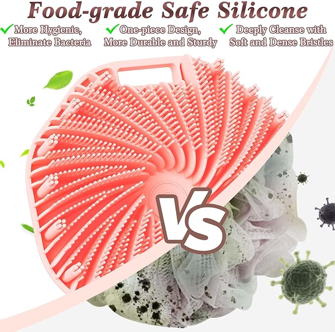 - 【Easy-to-clean & Hygienic】 Silicone material is easy to clean, quick-drying and not easy to produce bacteria. You just need to rinse it and hang to dry. Package includes: back brush x 1; soft brush x 1; face brush x 1; body buffer x 1; hair scrubber x 1; strong adhesive hook x 2.