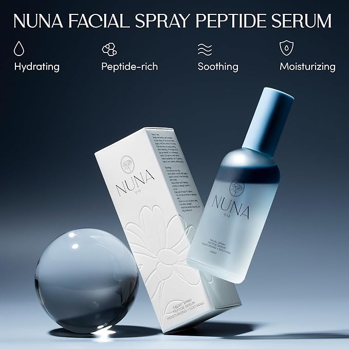 NUNA Ultra Hydrating Face Serum Spray with Peptides, Niacinamide, Hyaluronic Acid & Botanical Extracts – Korean Lightweight Moisture Boost Facial Mist & Setting Spray for Makeup – 3.38 fl oz