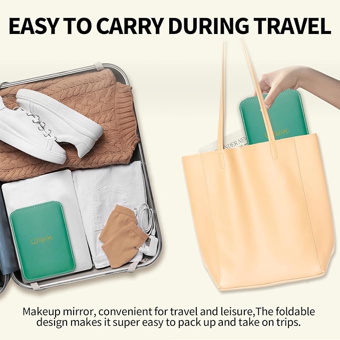 - 【Portable Compact Design】Lightweight beauty foldable small mirrors (0.6lbs) with compact rectangular shape, folds flat to 0.4" thickness with protective cover, tough, space-saving, easily fits in luggage/backpack for travel essentials mirror. Suitable for women and men, teenage girls and boys