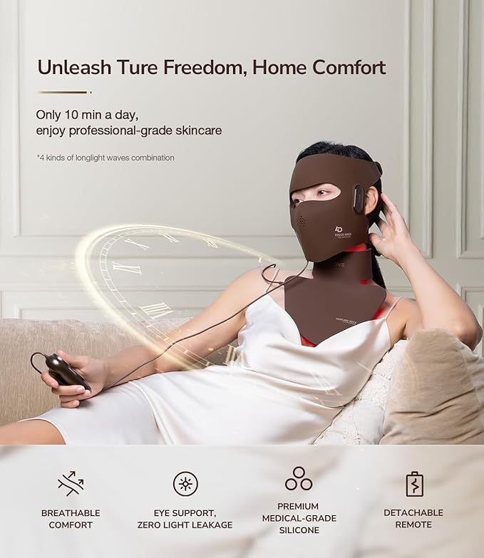 - Precision Zone Lighting – 140 Beams: Features 140 evenly distributed light beams for full-face coverage. The flexible curved design hugs facial contours, reducing light loss and maximizing results where it matters most.