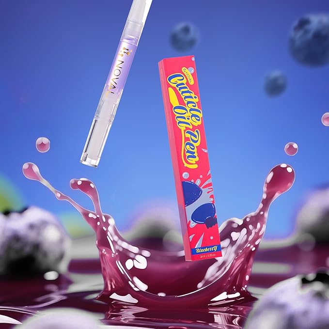 NOVAL Cuticle Oil Pens for Nails – Moisturizing & Fast Absorption, Non-Greasy, Blueberry Scent, 6PCS