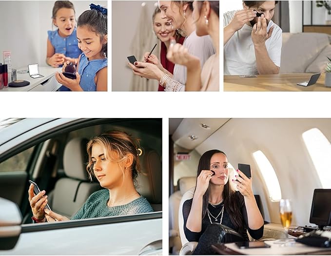 - 【Compact Travel Mirror】This mini handy cosmetic mirror is portable and easy to carry, can be placed in a handbag, pocket or purse, perfect for going out, traveling, camping and other occasions.