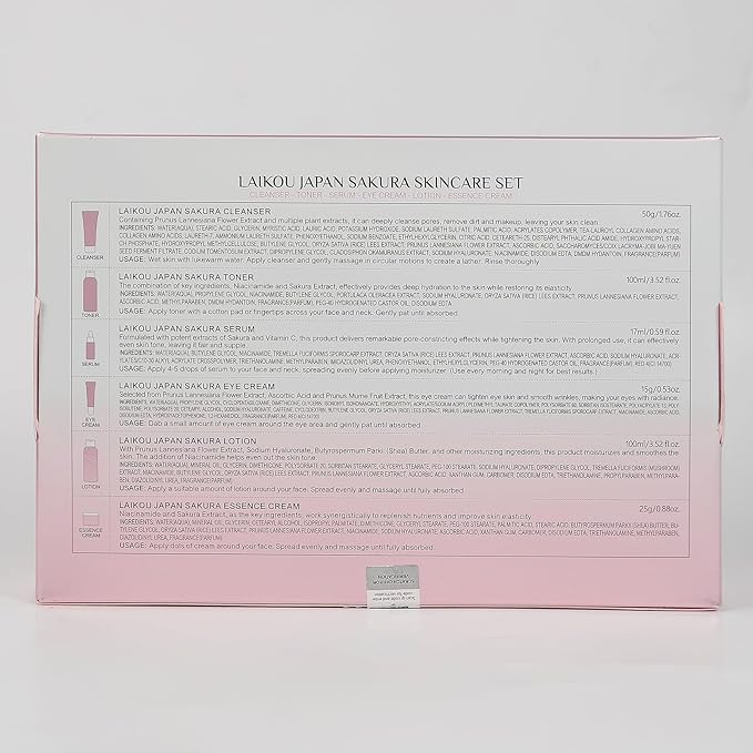 LAIKOU Skin Care Set, Facial Skin Care Products, Skin Care Kit with Sakura Serum, Cleanser, Toner, Lotion, Eye Cream, Essence Cream 6pcs for Women Teen Girls Mom Daughter Lover Mother's Day Christmas