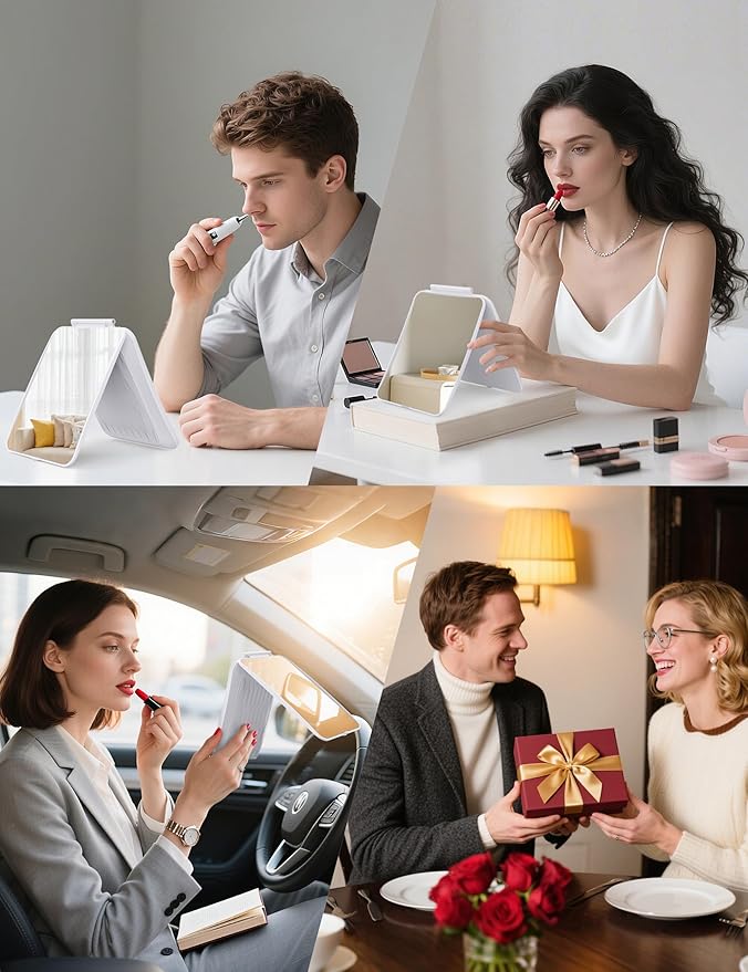- 【Portable Travel Mirror & Lightweight and Portable】 The mirror itself weighs only 1.0 lbs, size: 8.5*6.4 inches, can be easily put into a bag or stored in a suitcase. It can be used for makeup application and touch-ups, suitable for commuting and 2-3 days business trips.