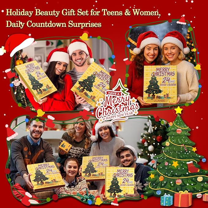 - UCANBE 24 Days Makeup Advent Calendar: Count down to Christmas 2025 in style with this festive beauty calendar, featuring 24 individually numbered boxes. Each day reveals a new surprise - from lipsticks and blushes to eyeshadows and more. Perfect for women and preteen girls, this advent calendar makes every December morning feel special and builds excitement all the way to Christmas Day. A fun, festive, and gift-worthy way to enjoy a complete makeup collection this holiday season.