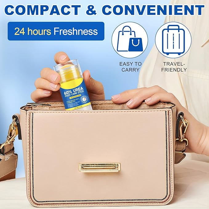 - 【Fast Relief for Deep Cracks & Calluses】Urea Foot Care Stick combines 60% Urea and 2% Salicylic Acid to gently exfoliate, deeply hydrate, and repair dry, cracked heels and rough skin. The maximum strength urea cream stick melts into thick skin layers on feet, elbows, and knees, smoothing rough patches and sealing cracks. Apply daily – feel the difference in 3 days without socks catching on dry skin!