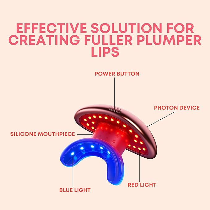 Rayvia - Red Light Therapy Device for Face, Lips - Lip Plumper - Collagen Booster - Anti-Aging Skincare Tool for Women - Fine Line Reducer - Blue Light Whitening Mouthpiece - Home Beauty (Rose Gold)