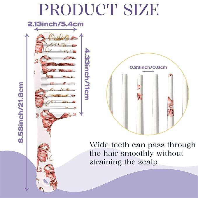 2PCS Wide Tooth Comb,Effortless Tangle Removal for Long Hair Styling Comb for Curly,Wet,Cute Aesthetic Design for Women Men and Girls(Pink-Bow-03)