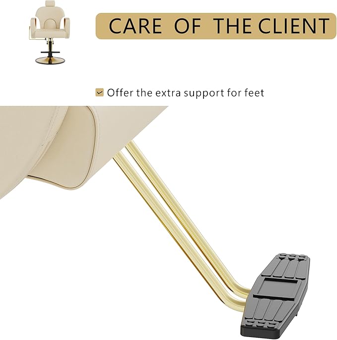- Adjustable Hydraulic Pump: The salon chair is equipped with a hydraulic pump(Never put it in backwards. Please gently steps on the lifting rod to discharge the air from the hydraulic pump. Don't need to step on the bottom every time