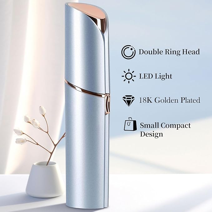 - FACIAL HAIR REMOVAL: Features a blue color design with a stainless steel blade and built-in light, gently removing fine hair from the upper lip, chin, cheeks, and neck for smooth, clean results