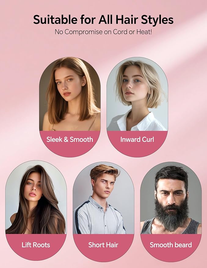 - ๐ใLightweight & Easy to Use - Even for Beginnersใ Weighing less than a smartphone, this small straightening brush is comfortable to hold and maneuver. The 360ยฐ swivel cord prevents tangling, while the intuitive design lets anyone achieve sleek, shiny hair with zero hassle.