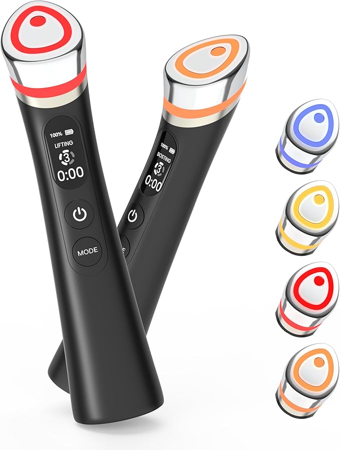 - 8-in-1 Functions in a Sleek Design: This slim, ergonomically designed device combines eight beauty functions: skin tightening, smoothing, vibration, heat therapy, and LED therapies (red, blue, amber, yellow) for various skincare needs. Enjoy spa-inspired care at home in just a few minutes a day—helping to reveal clearer, more luminous-looking skin