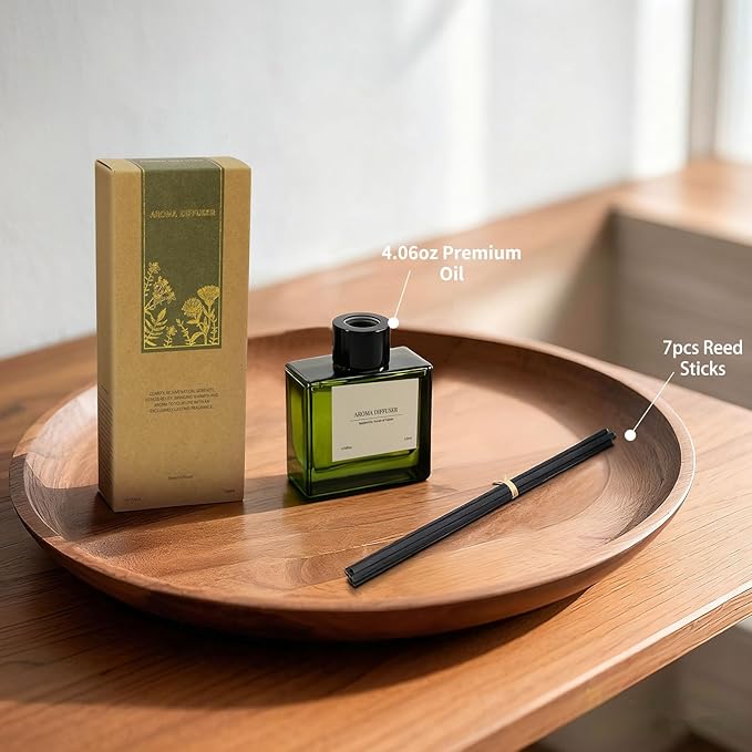 - Premium Complete Set: Enjoy everything you need: 4.06 oz (120 ml) of non-toxic sandalwood fragrance liquid, 7 premium reed sticks, a stylish recyclable glass vessel and a gift box - all designed for effortless customization of your home's ambiance.