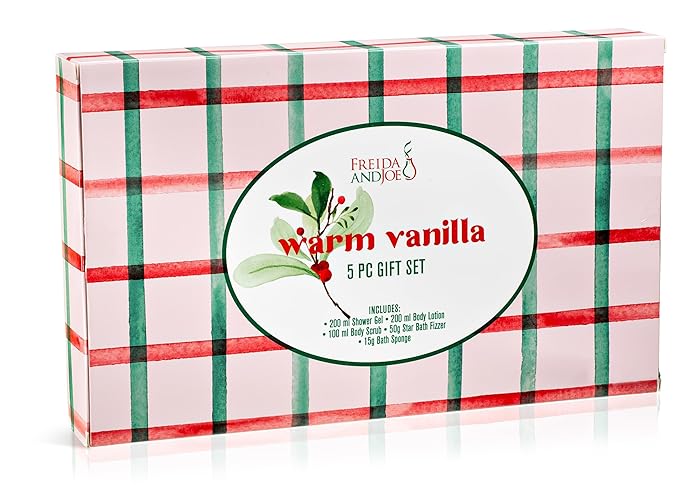 Freida & Joe Fragrance Bath & Body Collection Gift Box, Includes Shower Gel, Body Lotion, Body Scrub, Bath Bomb & Sponge (Warm Vanilla - Pink)