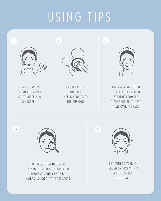 - [Lightweight, Skin-Fit Coverage] Lightweight watery texture that is easy to apply, creating long lasting base makeup, non-drying, and natural finish. With 45% water content, this air cushion fundation feels light and comfortable on the skin, suitable for all-day wear.
