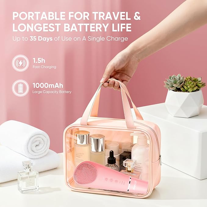 - Portable Design with Ultra-Long Battery Life: Equipped with a 1000mAh battery, this facial cleansing brush supports USB charging and auto-shuts off after 12 minutes of continuous use. Fully charge in just 1.5 hours for up to 40 days of use—ideal for busy schedules, students, or travelers, eliminating the need for frequent charging