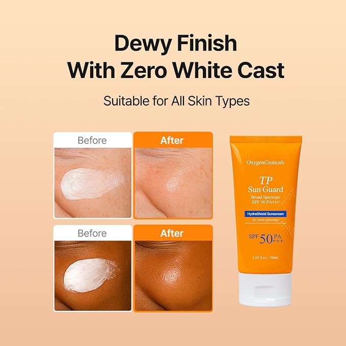 OxygenCeuticals TP Sun Guard - SPF 50+ Reef-Friendly, Oxybenzone & Octinoxate Free, Lightweight & Hydrating Daily Sunscreen with Chamomile Scent, No White Cast. 1.69 fl.oz (50ml)