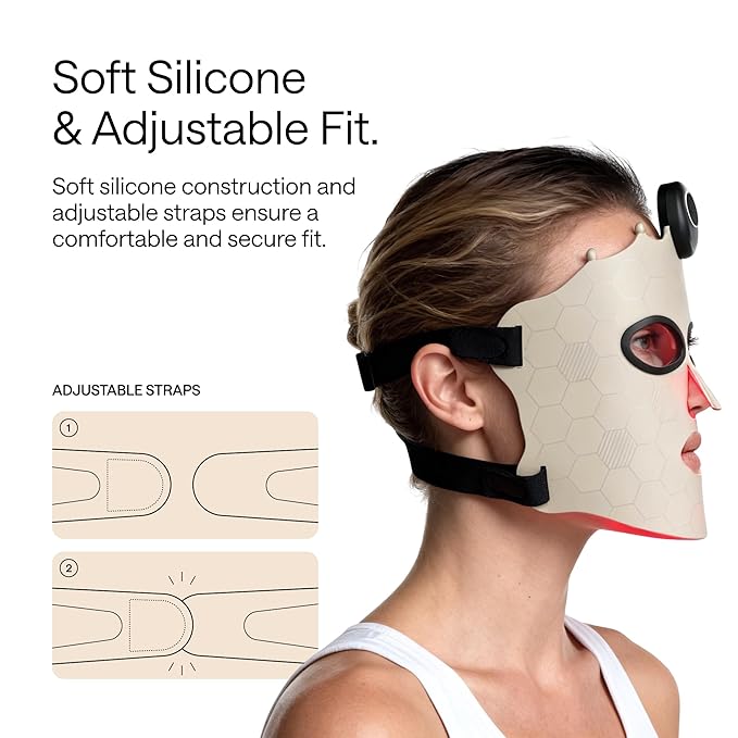 - Soft Silicone & Snug Fit:Crafted from premium, medical-grade silicone for a soft touch and lightweight comfort. The flexible material and adjustable strap adapt perfectly to your face contours, ensuring a secure, snug fit during every treatment.