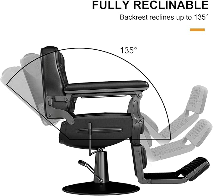 - Exceptional Comfort for You and Your Clients: The chair boasts luxurious upholstery, an ergonomic structure, and generous cushioning to provide superior comfort during extended barbering sessions. The cushion is covered with high-quality leather, filled with high-density sponge, bringing more cushioning and support
