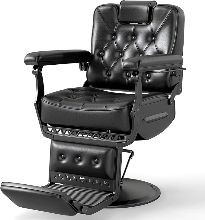 - Timeless Vintage Design with Premium Leather: Capture the authentic essence of a classic barbershop. This chair features a stunning retro design, complete with deep tufted upholstery and supply high-quality leather. This isn't just a seat; it's a statement piece that impresses clients the moment they walk in. Perfect for salon, spa or barbershop
