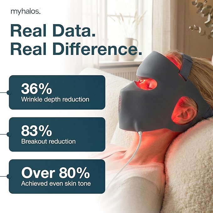 myhalos® Red Light Therapy Face Mask - Medical-Grade LED Light Therapy Device with Nir-Infrared (1072 nm), Red (633 nm) & Blue (460 nm) Light - Anti-Aging Skin Treatment for Wrinkles & Fine Lines