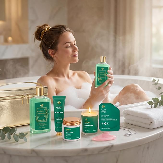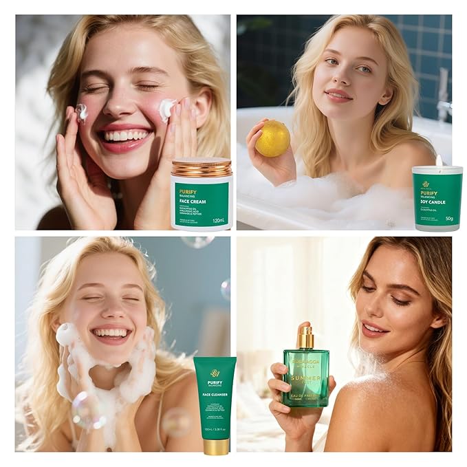 - Head To Toe Skin Care: Let this skin care kit pamper your skin! Clay mask and gel cleanser to cleanse your skin. Under Eye patches for reduce dark circles, eye bags. Gel lip mask and lip gloss for plump lips. Sheet masks, face cream, face serum and hand cream for nourished, hydrated skin. Bath bombs to pleasure the body and mind. Perfume ensures that the delightful fragrance lasts all day, keeping you fresh and confident