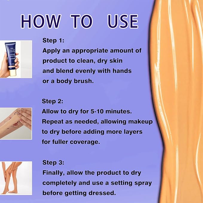 - Waterproof Transfer-resistant Body Coverage: Unlike the traditional leg and body makeup, the body coverage perfector is waterproof, sweatproof, transfer-resistant and lasts for over 24 hours.