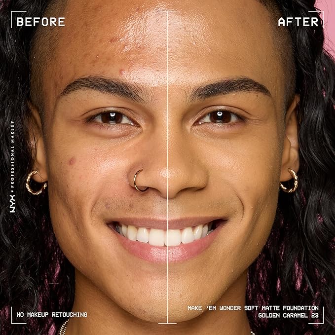 NYX PROFESSIONAL MAKEUP Make 'Em Wonder Liquid Foundation, 24HR Foundation Makeup With A Soft Matte Finish, Buildable Full Coverage - 23 Golden Caramel