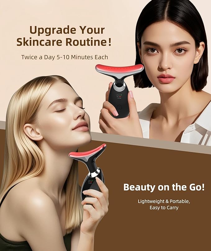 - Engineered for convenience, our face and neck massager light therapy is compact and stylish. Whether you're traveling or on a daily commute, it's the perfect beauty companion