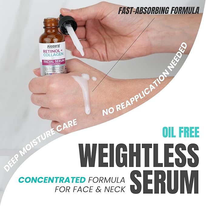 Alozera Hyaluronic Acid Body Lotion (2-Pack) and Retinol Collagen Serum with Aloe, Ceramides and Stem Cells – Hydrating and Firming Skincare Duo for Face, Neck and Body, Lightweight, Fragrance-Free, M