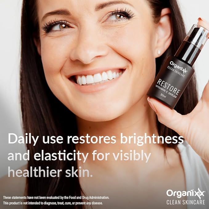 Organixx Restore Vitamin C Serum, Daily Face Serum With Hyaluronic Acid, Organic Vitamin E, Witch Hazel, Glycerin, & Aloe Vera, Brightening Formula, Gentle on Sensitive Skin, Vegan Skin Care, 1 FL Oz