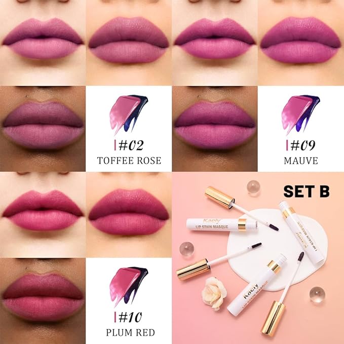 Kaely 3Pcs Lip Stain Peel Off Masque, Long Lasting Waterproof Smudge Proof Lip Tint, Non-Transfer Semi Permanent Lipliner Tattoo with Tweezer, Matte Finish, Vegan & Cruelty-Free, Set B-02+09+10