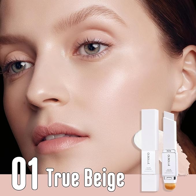 2 in 1 Color-Changing Foundation Stick, Weightless, Skin fit, Satin Glow Finish, Coverage Finish Base Makeup - Dual-Ended with Brush (01#True Beige)