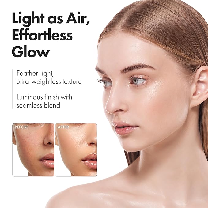 - LIGHTWEIGHT, BUILDABLE COVERAGE. Experience the ultra-light, breathable texture with seamless coverage. Our face foundation delivers 24-hour hydration for a naturally luminous finish. The low-transfer, long-lasting wear resists creasing, caking, fading, sweat, and humidity, keeping your skin fresh and smooth all day!